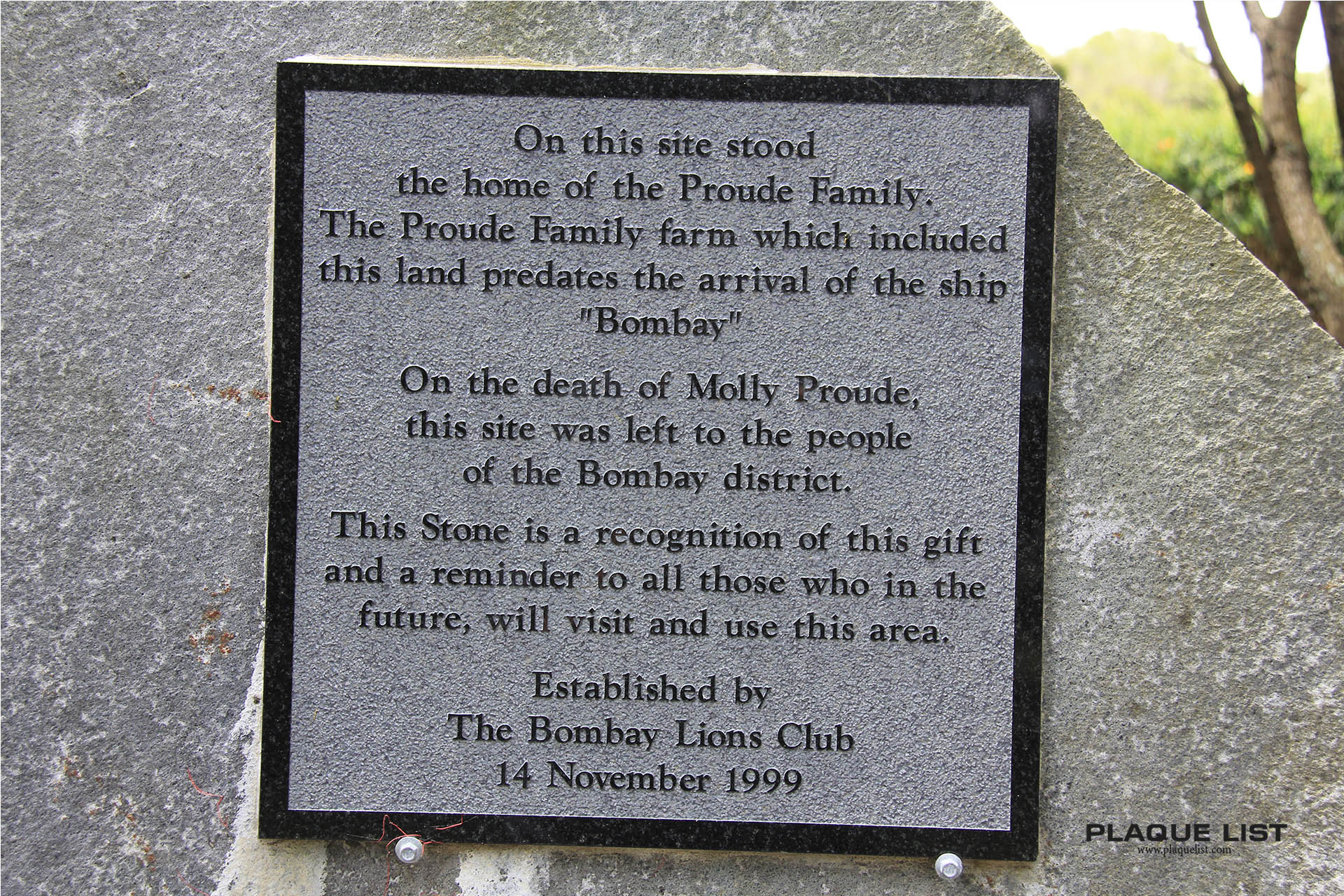 The Proude Family farm which included this land predates the arrival of the ship Bombay.