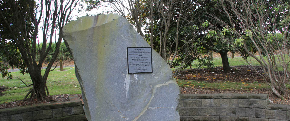 A large stone in Proudes Corner Millennium Park. Parking on Razorback Road.