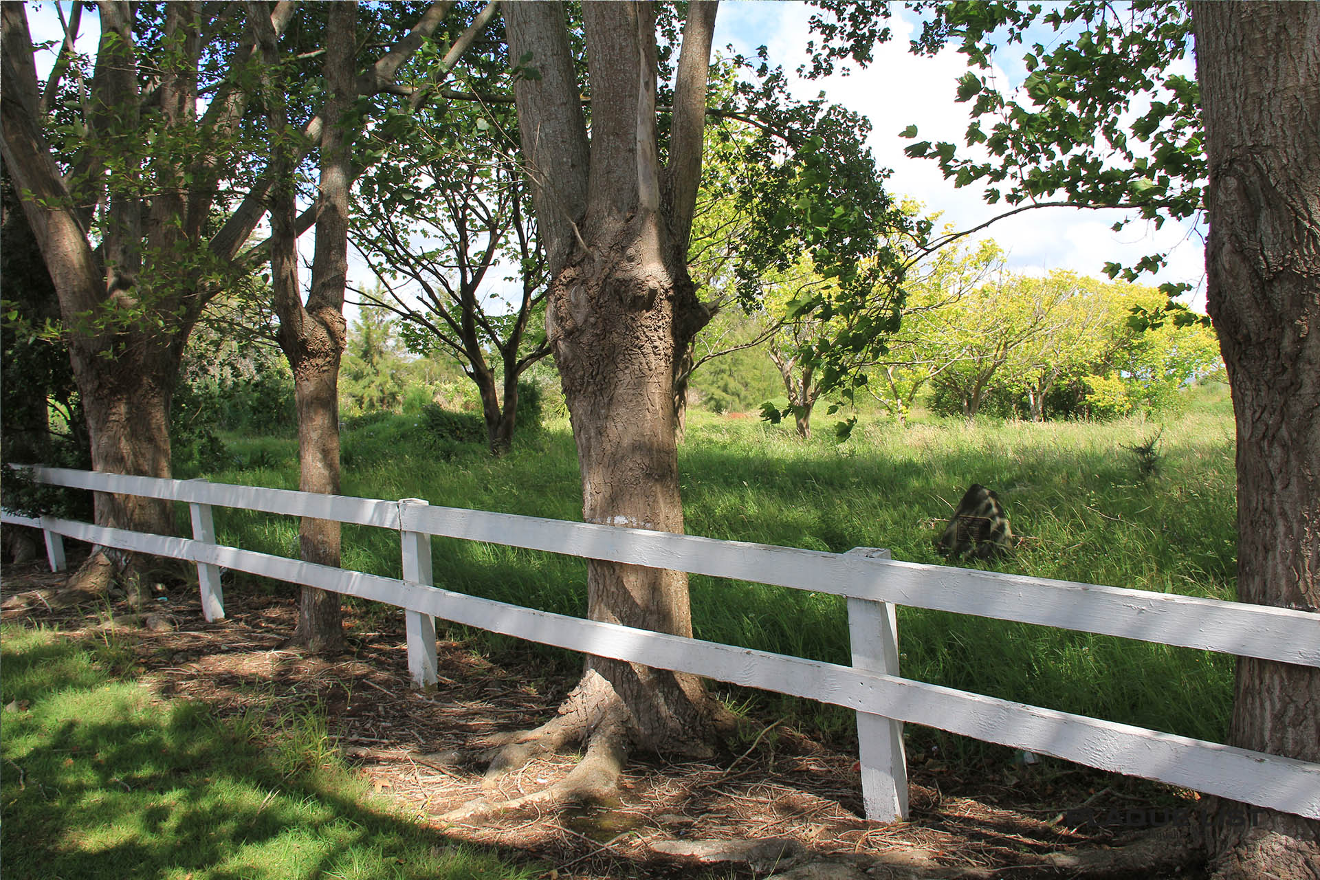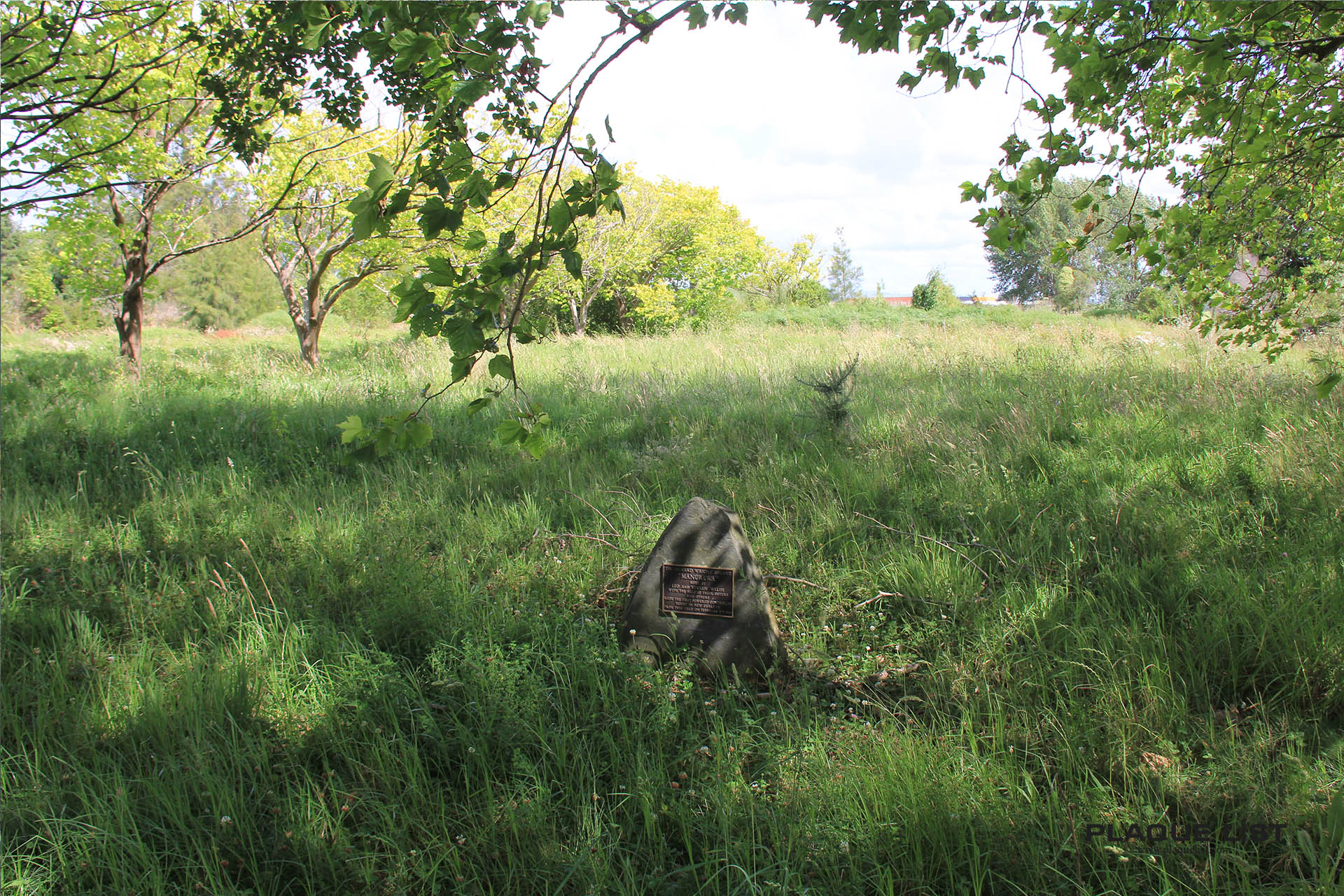 A small plaque lost in long grass behind a fence. Plenty of room to park off the road.