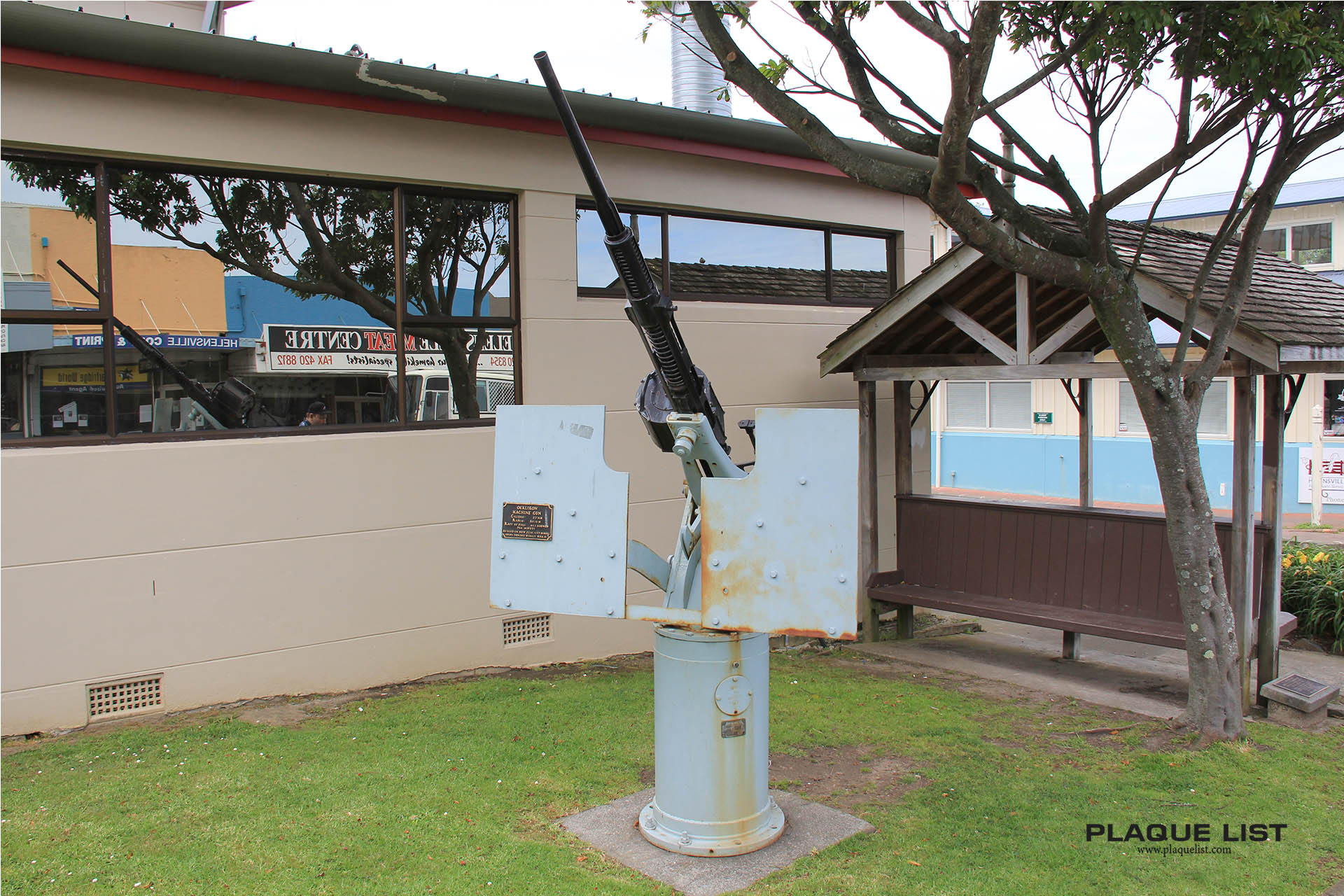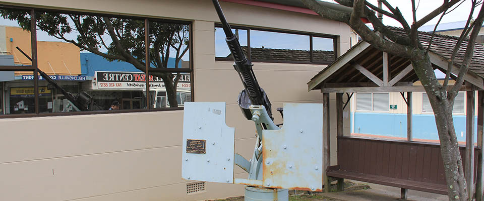 A small gun on a navy ship world war 2 gun displayed outside the Kaipara RSA in Helensville.