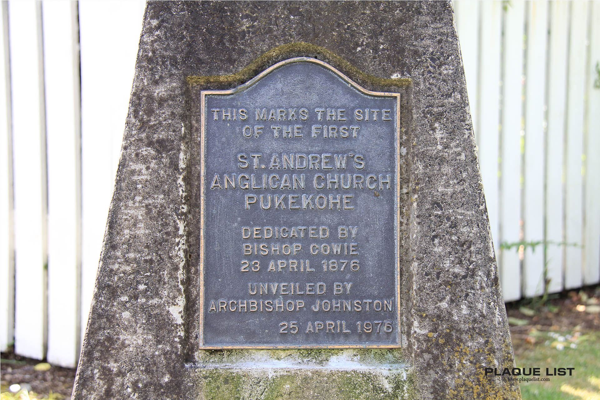 Dedicated by Bishop Cowie 23 April 1876