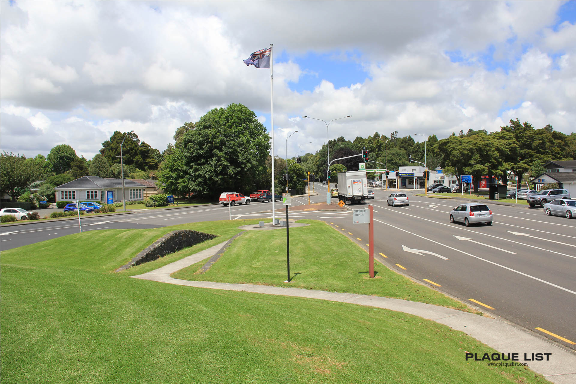 On the corner of Gt South Road and Settlement Road. Parking is available on old road section off Settlement Road.