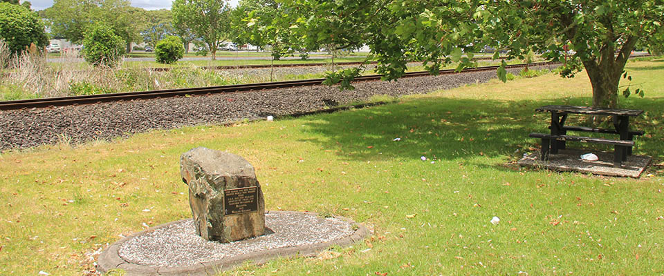 In park opposite shops, Busy road but room to park, Railway line close by.