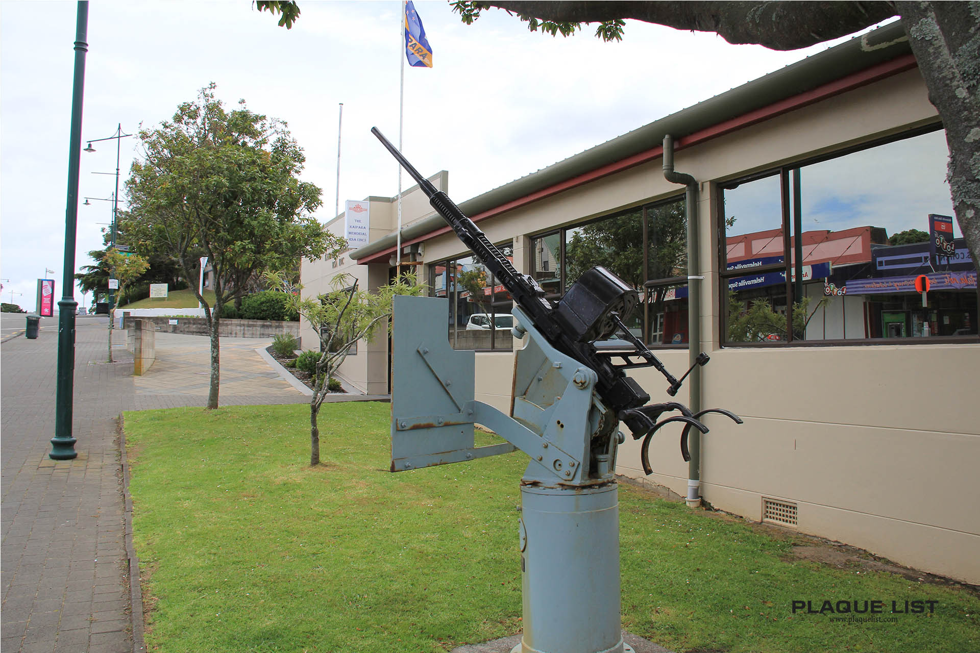 A small gun on a navy ship world war 2 gun displayed outside the Kaipara RSA in Helensville.