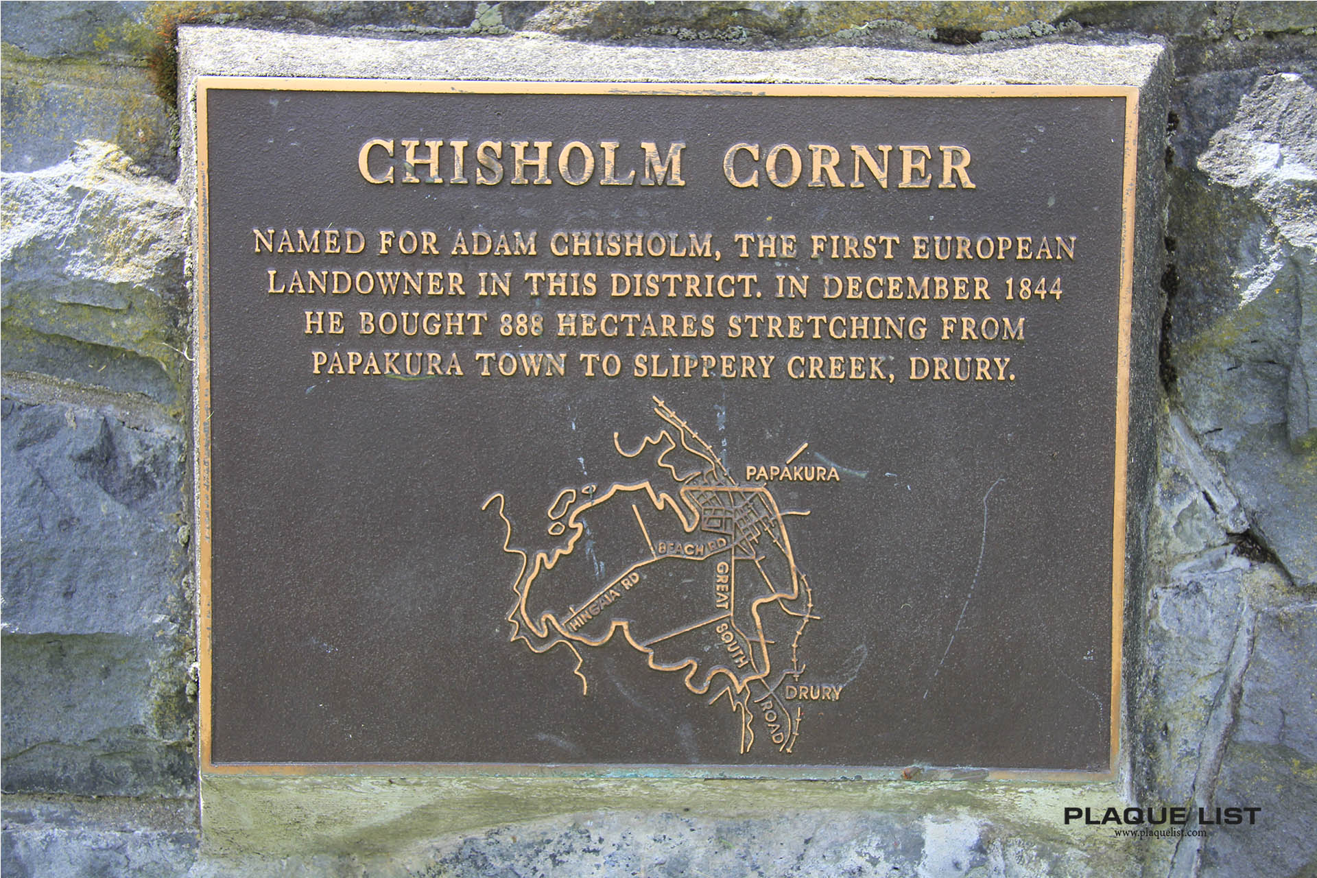 Named for Adam Chisholm, The first european landowner in this district. In December 1844 he brought 888 hectares stretching from Papakura Town to Slippery Creek, Drury.